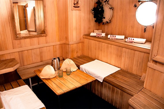 Сауна с купелью с байкальской водой. Посещение сауны на борту теплохода станет прекрасным дополнением отдыха на Байкале.