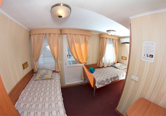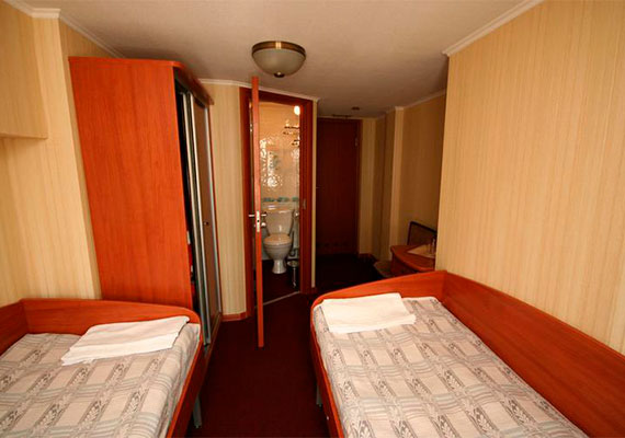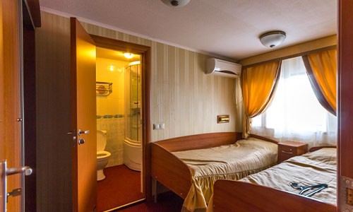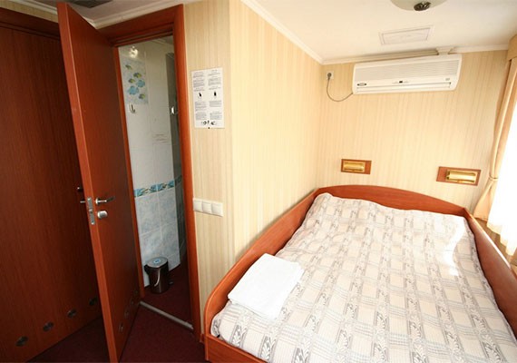 Для размещения туристов доступны одно-, двух- и трехместные каюты со всеми удобствами. В каждой каюте есть санузел, телевизор, холодильник, кондиционер, шкаф для одежды.