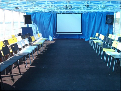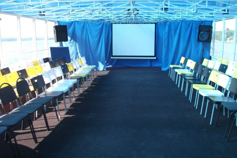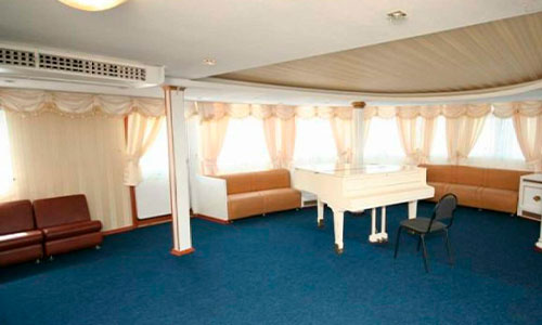 В кинозале на верхней палубе проводятся показы фильмов и развлекательные мероприятия.